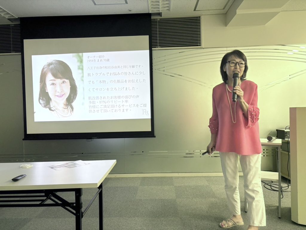 まだこれまでビジネスPRをやっていない方々が、それぞれの事業をいちょうビジネスクラブ会員に知ってもらうために、プロジェクターなどを使って10分間のプレゼンテーションを行いました
