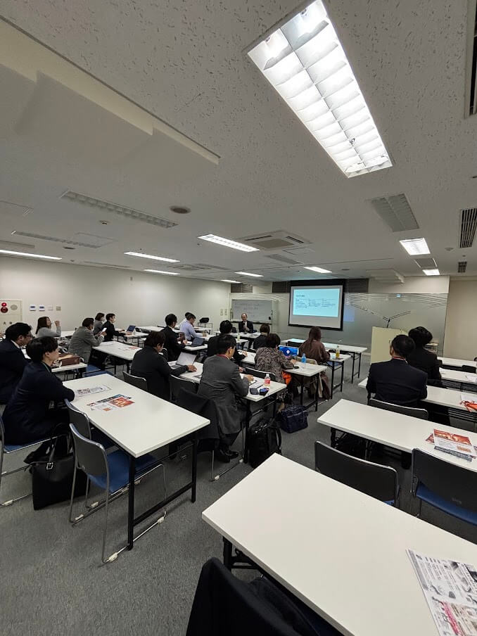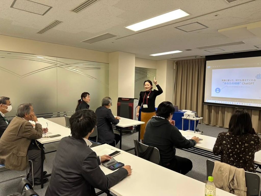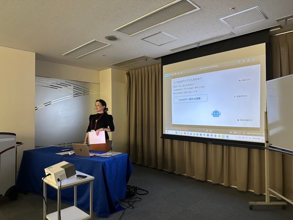 最初全体でAIについての概要、会員の会社カテゴリーごとにAIがリサーチした内容の説明が石原氏からありました。後半2つに部屋を分けて初級グループでは宇田氏がChatGPTのダウンロードから基本的な使い方を説明しながら、実際に各々の携帯で実践しました。応用グループでは石原氏がAIが得意とする分野(文章生成、要約、議事録、データー分析など)ごとにCiaude、Grok、Gamma、Gemini、PLAUD、notebookLMといった多様なAIアプリの特徴と活用法を実際に使用しながら説明しました。特にGeminiでリサーチした内容をnotebookLMの対話形式でリサーチ内容をわかりやすく説明する機能は驚きました。今回の内容を実践に取り入れることで、業務効率の大幅な向上が期待できます。多くの参加者からまたAI講座の希望がありました。