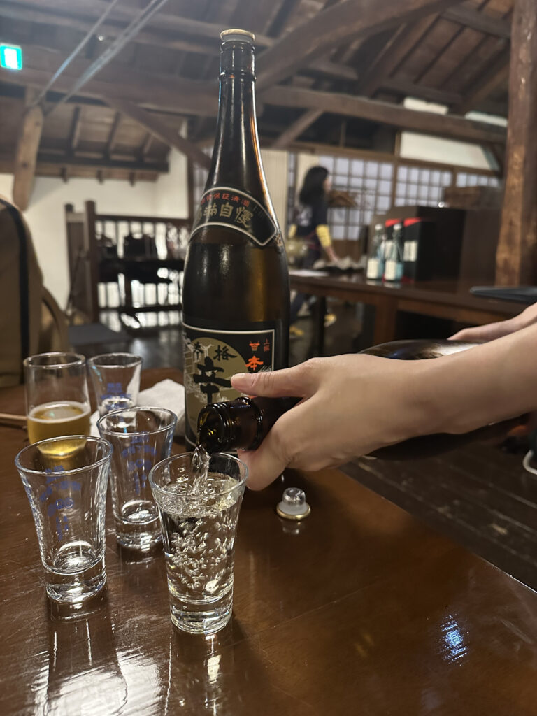 当日はマロウドイン前に集合し、バスにて現地へ向かいました。到着後は酒蔵内を見学し、酒造りの工程や歴史、設備について詳しい説明を受けました。長い年月にわたり受け継がれてきた伝統と、時代に合わせた工夫や挑戦を続けている点が強く印象に残りました。